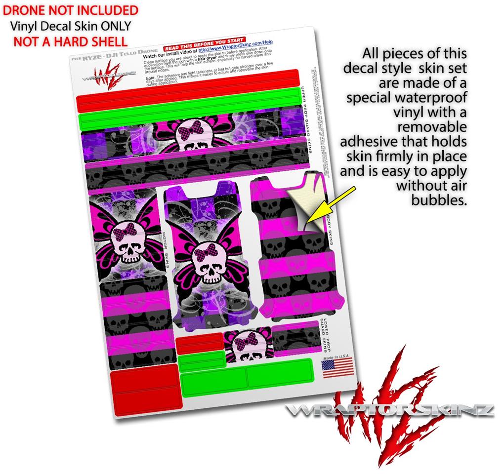 Skin Decal Wrap 2 Pack for DJI Ryze Tello Drone Butterfly Skull DRONE NOT INCLUDED