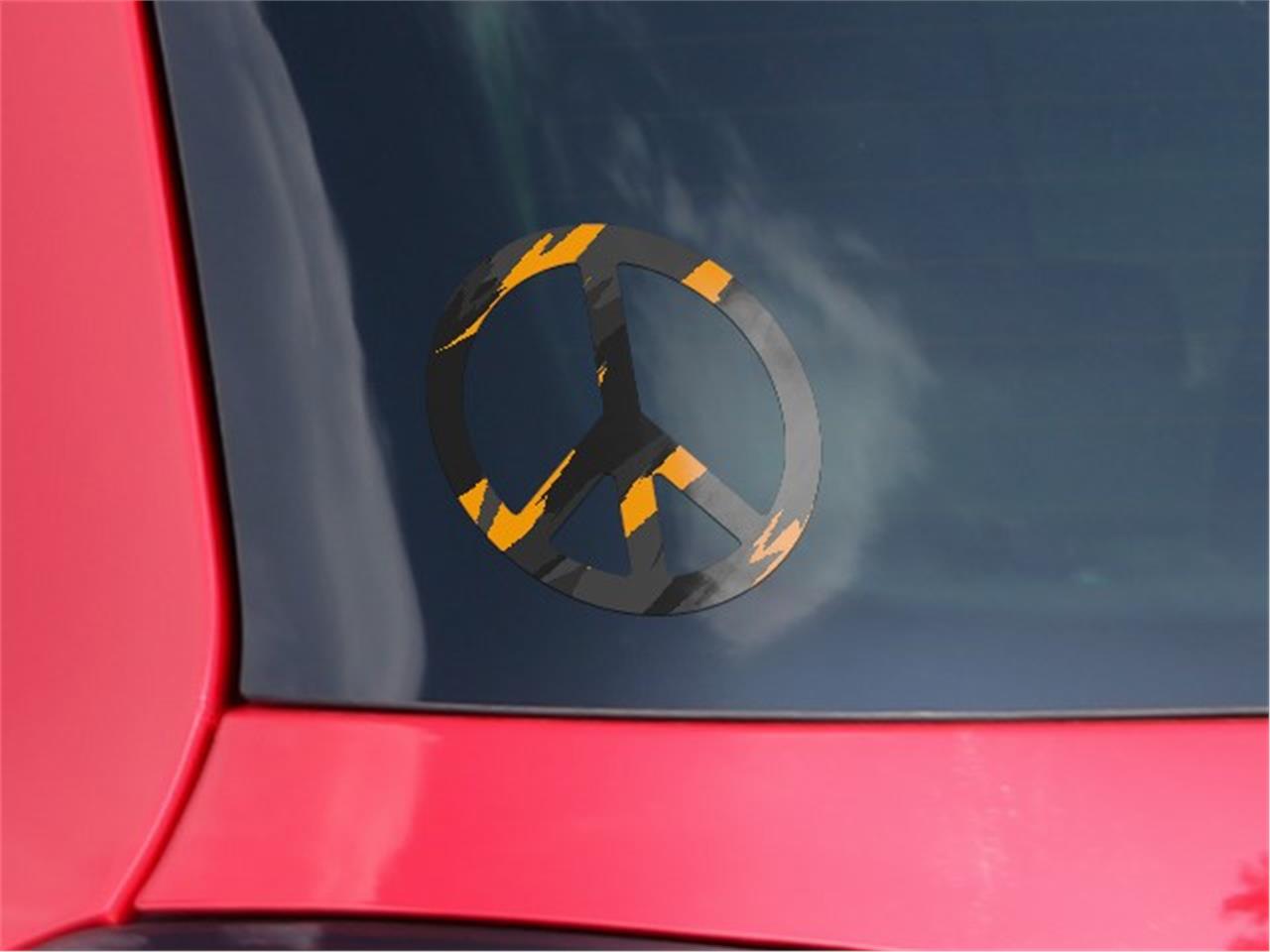 Jagged Camo Orange - Peace Sign Car Window Decal 6 x 6 inches