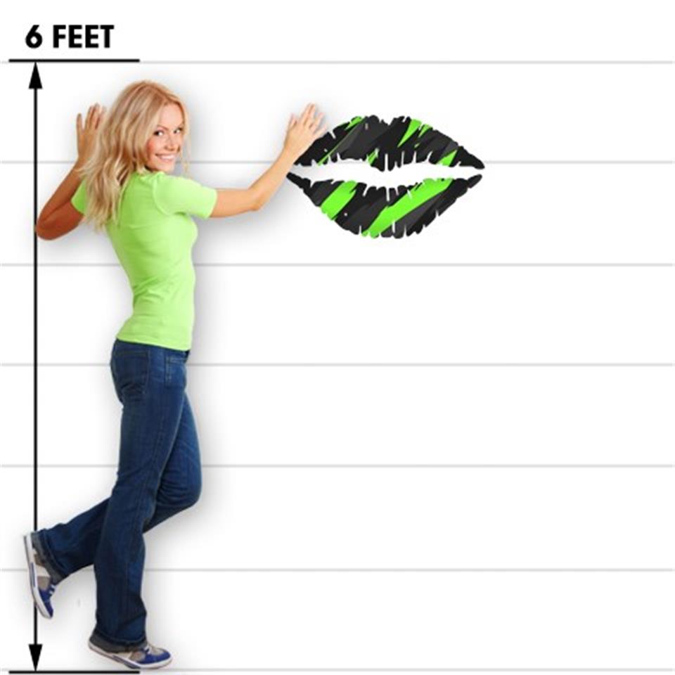 Jagged Camo Neon Green - Kissing Lips Fabric Wall Skin Decal measures 24x15 inches