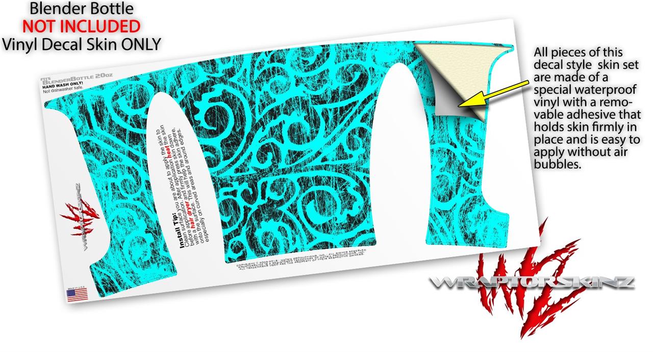 Decal Style Skin Wrap works with Blender Bottle 20oz Folder Doodles Neon Teal (BOTTLE NOT INCLUDED)
