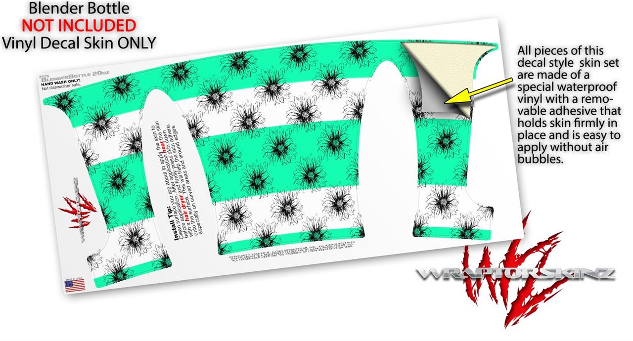 Decal Style Skin Wrap works with Blender Bottle 20oz Kearas Daisies Stripe SeaFoam (BOTTLE NOT INCLUDED)