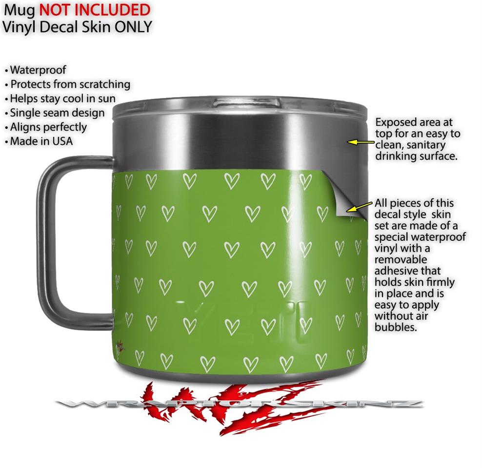 Skin Decal Wrap for Yeti Coffee Mug 14oz Hearts Green On White - 14 oz CUP NOT INCLUDED by WraptorSkinz