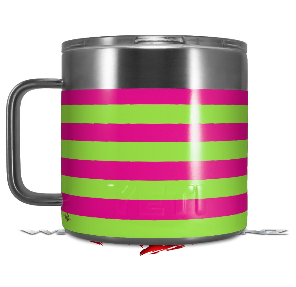 Skin Decal Wrap for Yeti Coffee Mug 14oz Psycho Stripes Neon Green and Hot Pink - 14 oz CUP NOT INCLUDED by WraptorSkinz