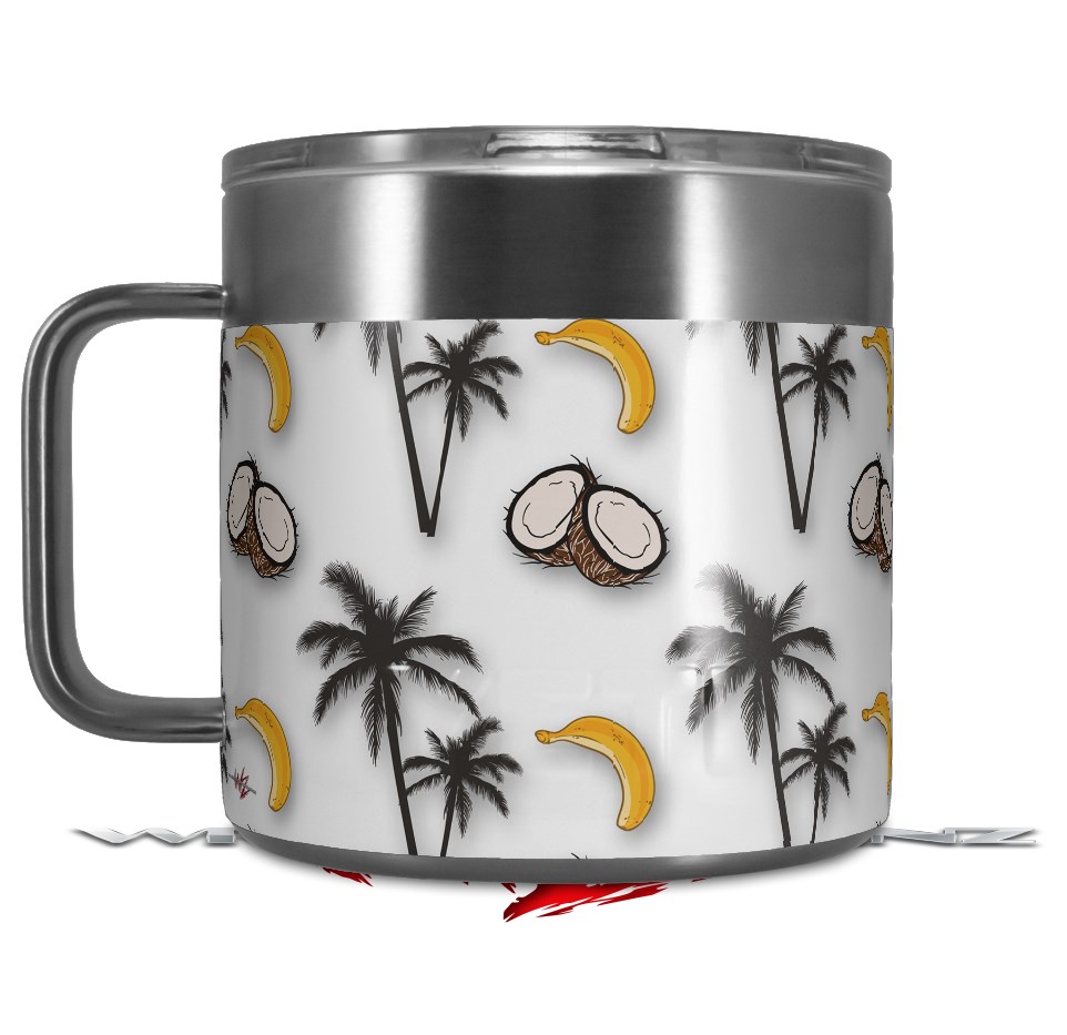 Skin Decal Wrap for Yeti Coffee Mug 14oz Coconuts Palm Trees and Bananas White - 14 oz CUP NOT INCLUDED by WraptorSkinz