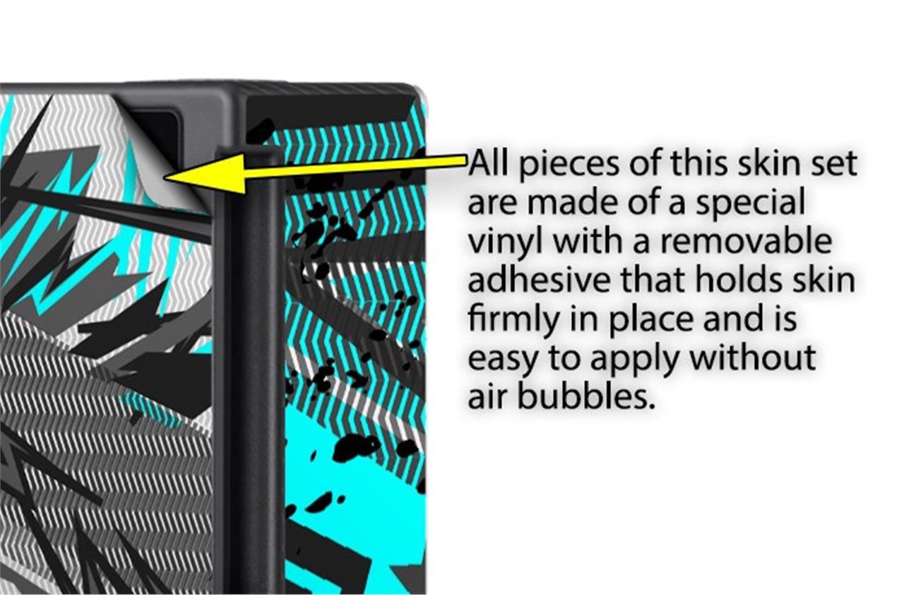 WraptorSkinz® skins are superb photo quality designs and vibrant colors printed with special Eco-Friendly, fade resistant inks. Our skins are self-adhering flexible vinyl skins that helps prevent scratches. Made of composite, multi-layered commercial grade materials. The bottom layer is made with a special removable adhesive that is easily positioned and applied without air bubbles. We print your design on the bottom layer then bond a professional grade laminate over the entire skin adding a glossy protective finish.