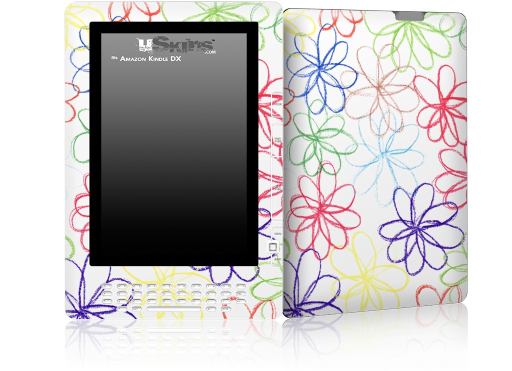 Kearas Flowers on White - Decal Style Skin for Amazon Kindle DX