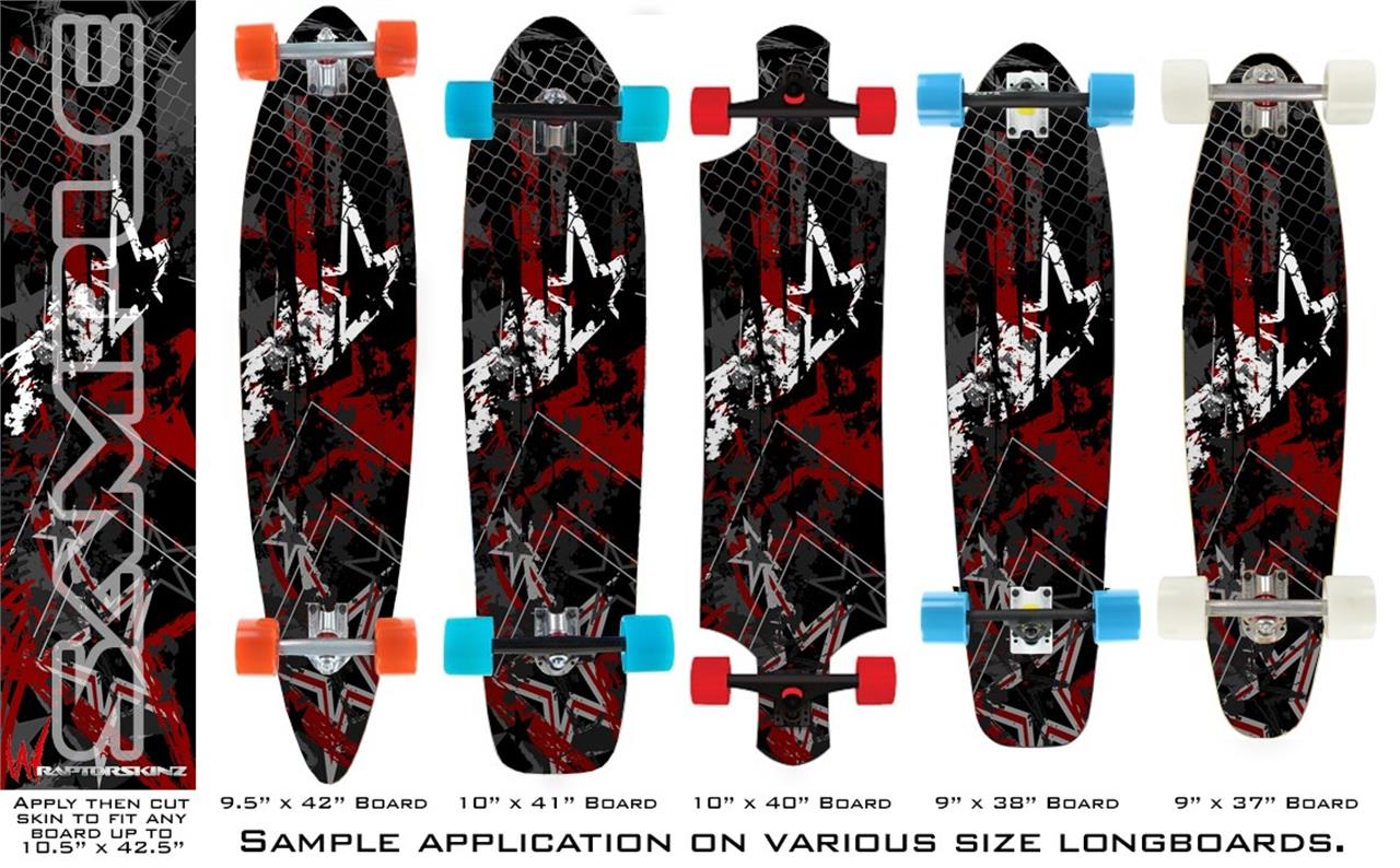 Our longboard skins are made so that one size fits boards up to 10” wide x 42” long. This means after applying the skin it you will trimming to fit you’re the shape of your board with a sharp utility knife.