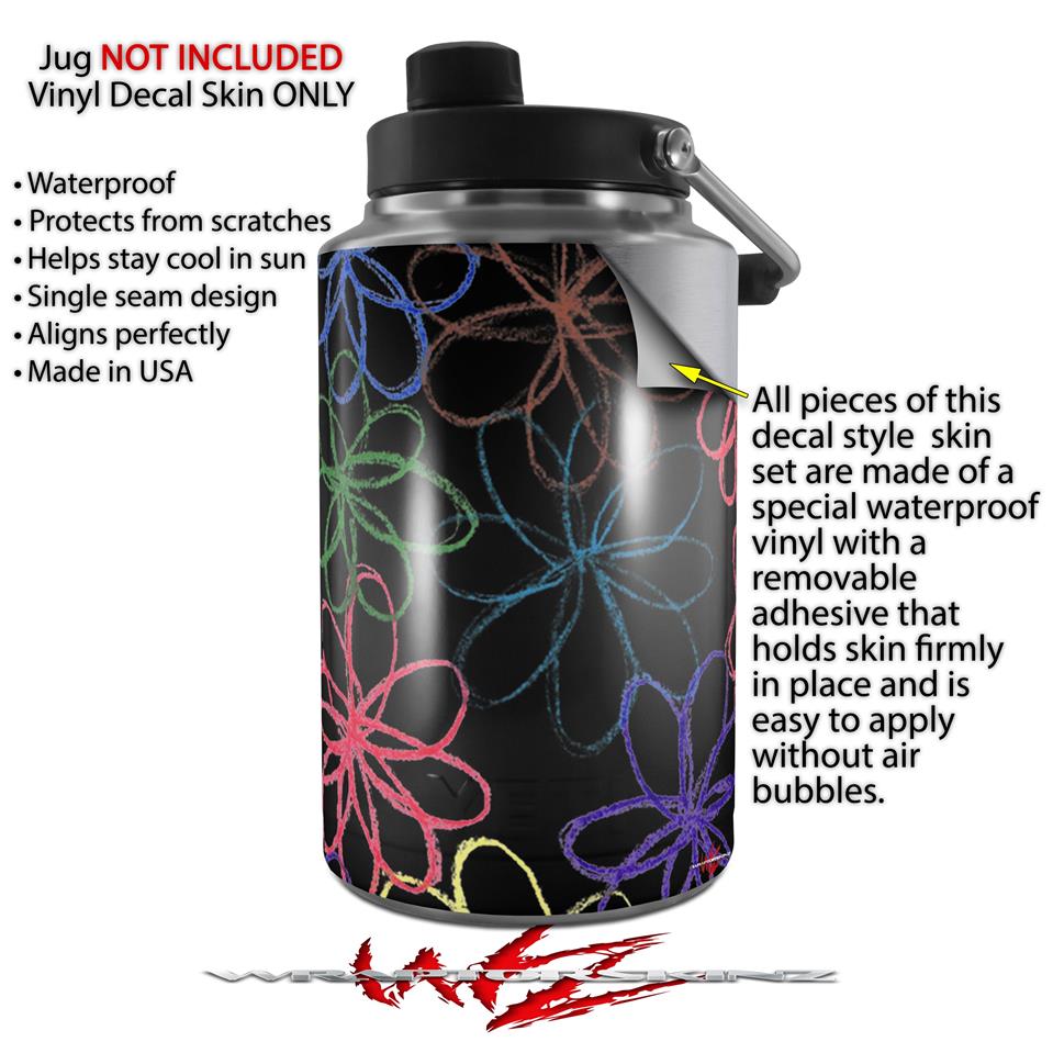 Skin Decal Wrap for Yeti 1 Gallon Jug Kearas Flowers on Black - JUG NOT INCLUDED by WraptorSkinz