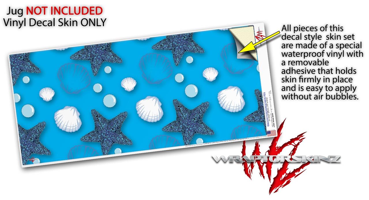 Skin Decal Wrap for Yeti 1 Gallon Jug Starfish and Sea Shells Blue Medium - JUG NOT INCLUDED by WraptorSkinz