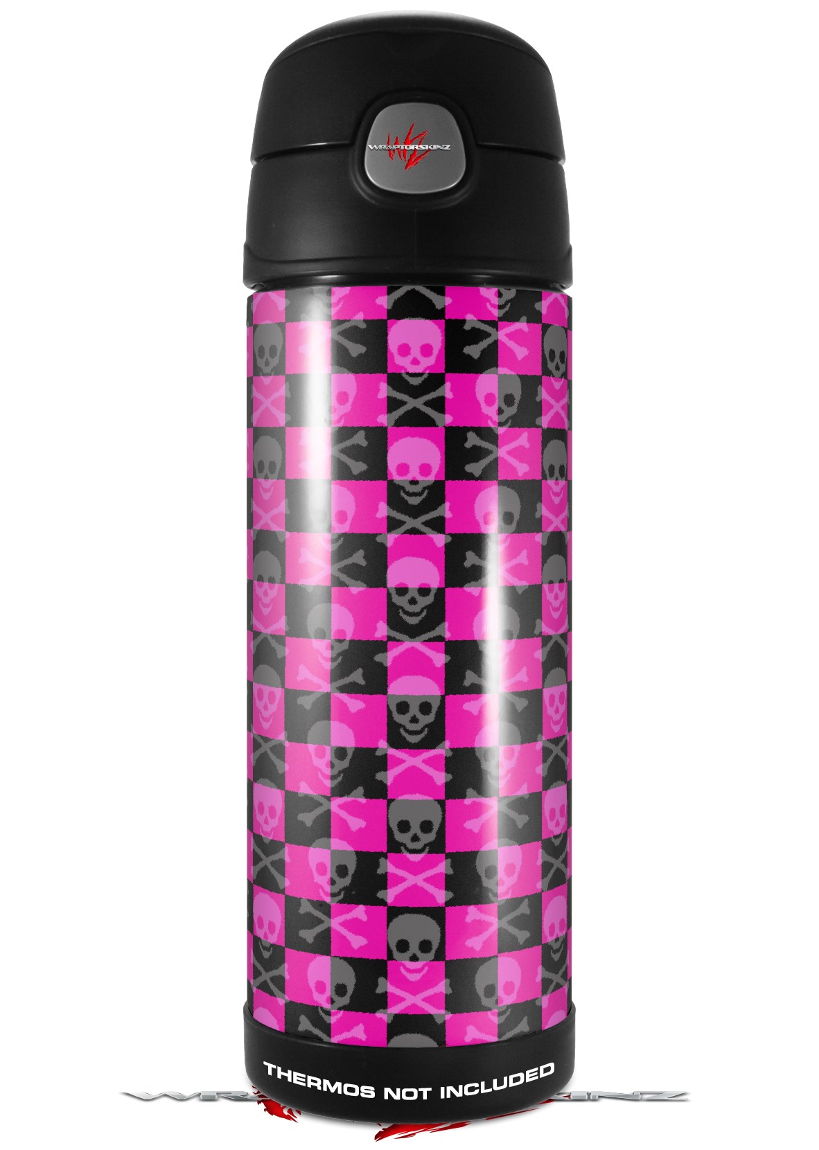 Skin Decal Wrap for Thermos Funtainer 16oz Bottle Skull and Crossbones Checkerboard (BOTTLE NOT INCLUDED) by WraptorSkinz