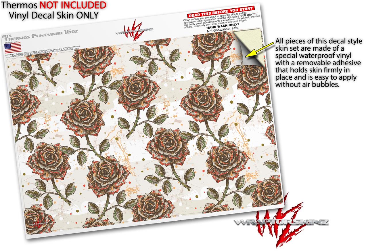 Skin Decal Wrap for Thermos Funtainer 16oz Bottle Flowers Pattern Roses 20 (BOTTLE NOT INCLUDED) by WraptorSkinz