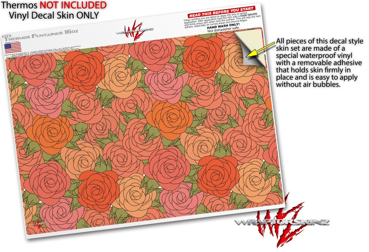 Skin Decal Wrap for Thermos Funtainer 16oz Bottle Flowers Pattern Roses 06 (BOTTLE NOT INCLUDED) by WraptorSkinz