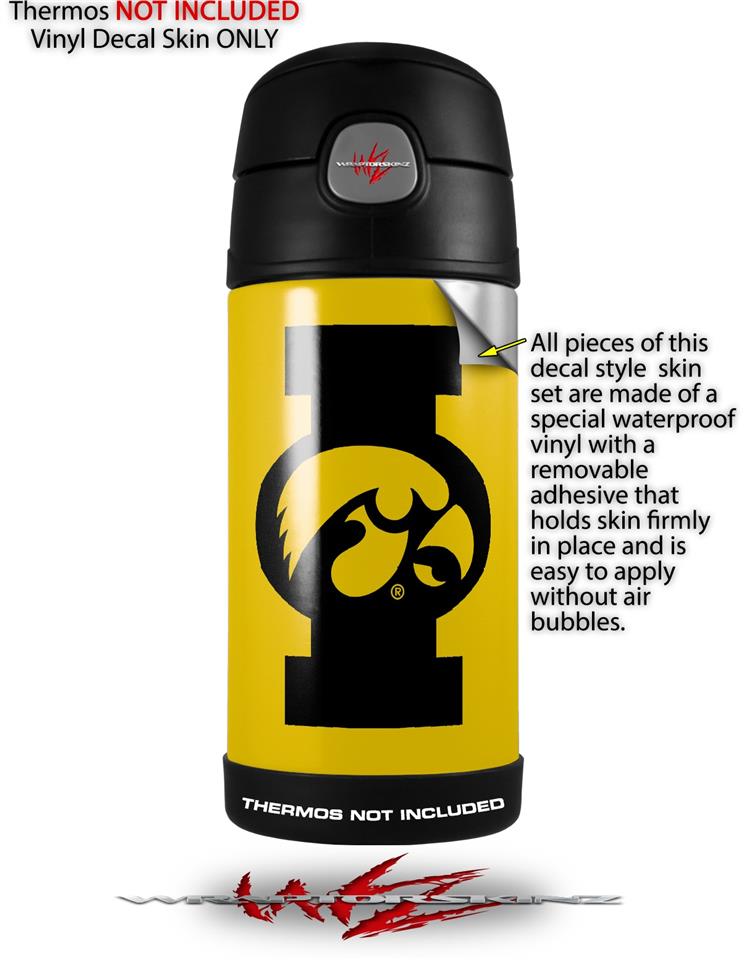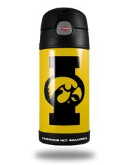 Skin Decal Wrap for Thermos Funtainer 12oz Bottle Iowa Hawkeyes Tigerhawk Oval 02 Black on Gold (BOTTLE NOT INCLUDED)