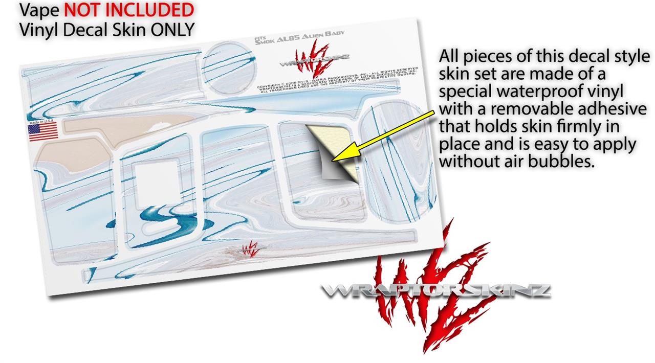 WraptorSkinz® skin wraps are printed using superb photo quality designs and vibrant colors printed with special fade resistant inks that last even in direct sun for years. WraptorSkinz are a composite of two layers of commercial grade materials. The bottom layer is a soft, flexible vinyl with a special removable adhesive that is easily positioned, applied without air bubbles. Next we print the bottom layer with UV protected, fade resistant inks that deliver superb photo quality designs in vibrant colors. Finally we bond a professional grade laminate over the entire skin adding a glossy protective finish. This product is not affiliated with or endorsed by the Smok brand.