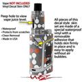 WraptorSkinz® skin wraps are printed using superb photo quality designs and vibrant colors printed with special fade resistant inks that last even in direct sun for years. WraptorSkinz are a composite of two layers of commercial grade materials. The bottom layer is a soft, flexible vinyl with a special removable adhesive that is easily positioned, applied without air bubbles. Next we print the bottom layer with UV protected, fade resistant inks that deliver superb photo quality designs in vibrant colors. Finally we bond a professional grade laminate over the entire skin adding a glossy protective finish. This product is not affiliated with or endorsed by the Smok brand.