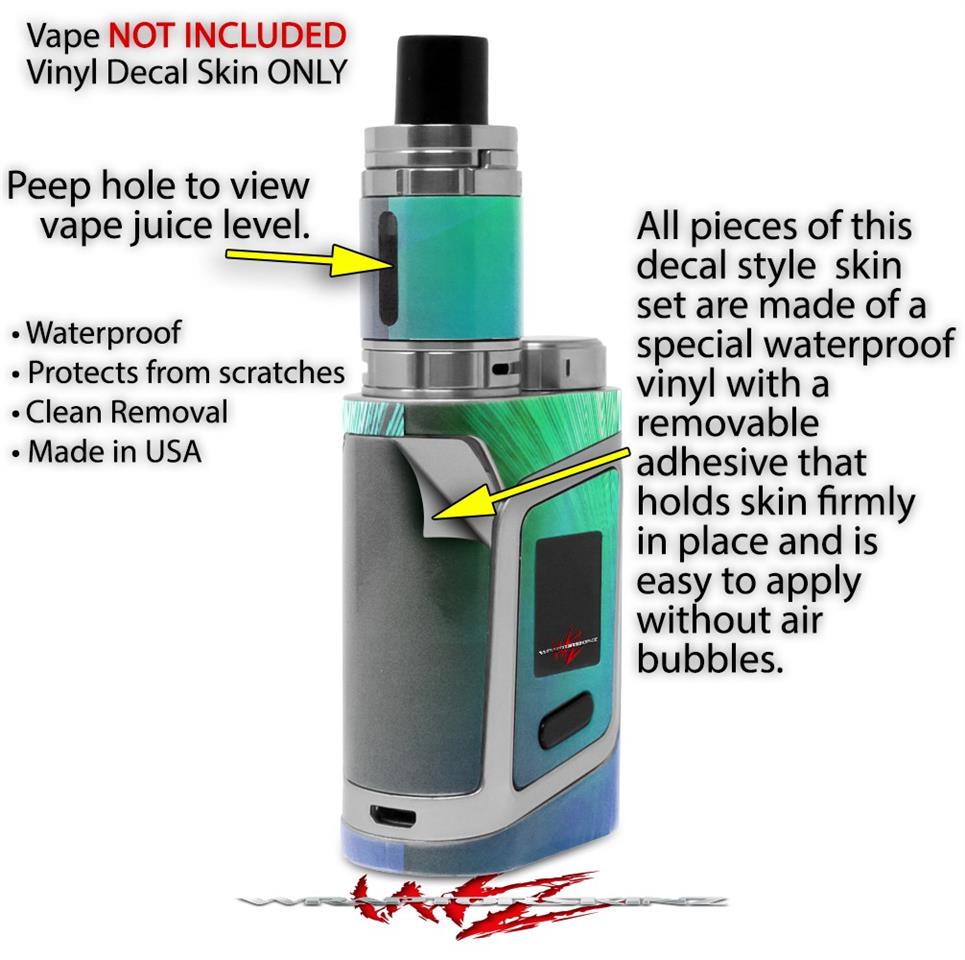 WraptorSkinz® skin wraps are printed using superb photo quality designs and vibrant colors printed with special fade resistant inks that last even in direct sun for years. WraptorSkinz are a composite of two layers of commercial grade materials. The bottom layer is a soft, flexible vinyl with a special removable adhesive that is easily positioned, applied without air bubbles. Next we print the bottom layer with UV protected, fade resistant inks that deliver superb photo quality designs in vibrant colors. Finally we bond a professional grade laminate over the entire skin adding a glossy protective finish. This product is not affiliated with or endorsed by the Smok brand.