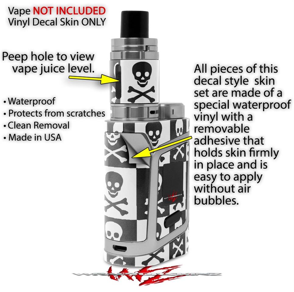WraptorSkinz® skin wraps are printed using superb photo quality designs and vibrant colors printed with special fade resistant inks that last even in direct sun for years. WraptorSkinz are a composite of two layers of commercial grade materials. The bottom layer is a soft, flexible vinyl with a special removable adhesive that is easily positioned, applied without air bubbles. Next we print the bottom layer with UV protected, fade resistant inks that deliver superb photo quality designs in vibrant colors. Finally we bond a professional grade laminate over the entire skin adding a glossy protective finish. This product is not affiliated with or endorsed by the Smok brand.