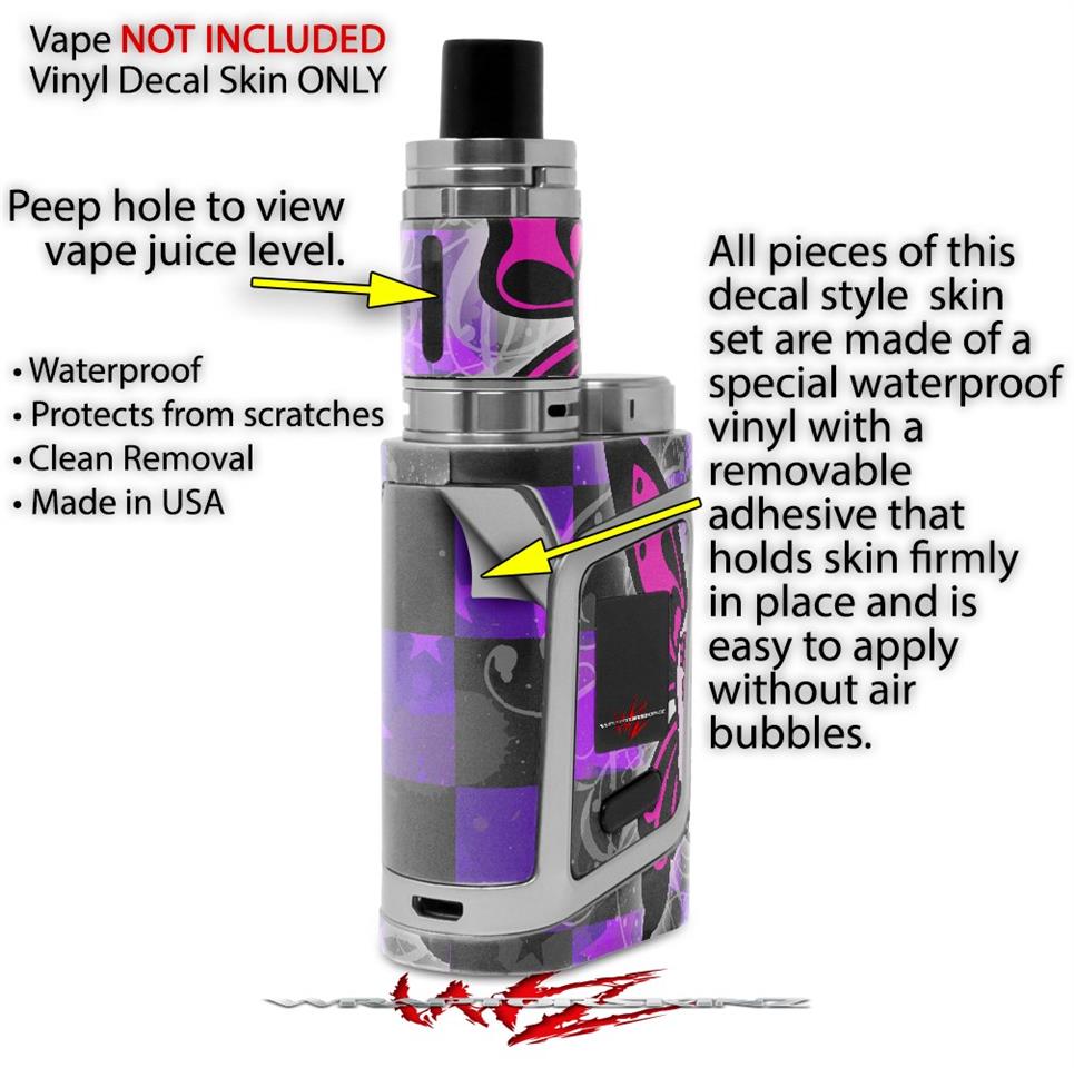 WraptorSkinz® skin wraps are printed using superb photo quality designs and vibrant colors printed with special fade resistant inks that last even in direct sun for years. WraptorSkinz are a composite of two layers of commercial grade materials. The bottom layer is a soft, flexible vinyl with a special removable adhesive that is easily positioned, applied without air bubbles. Next we print the bottom layer with UV protected, fade resistant inks that deliver superb photo quality designs in vibrant colors. Finally we bond a professional grade laminate over the entire skin adding a glossy protective finish. This product is not affiliated with or endorsed by the Smok brand.