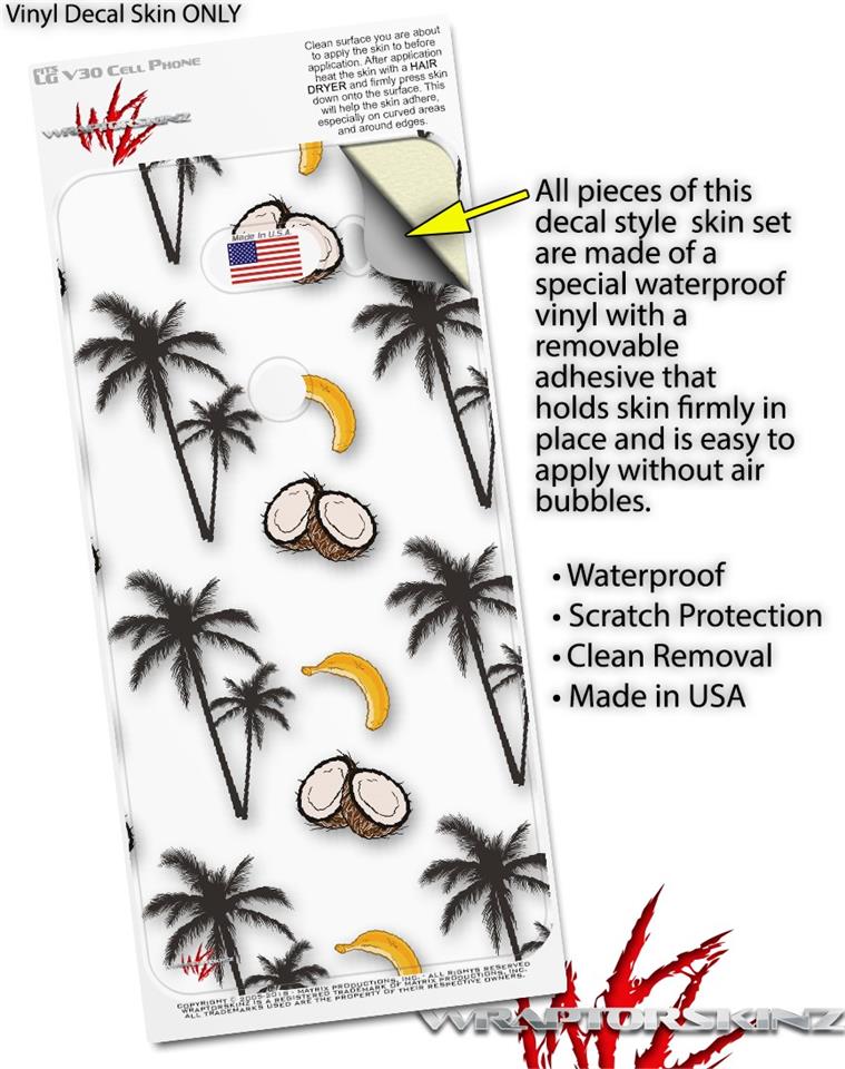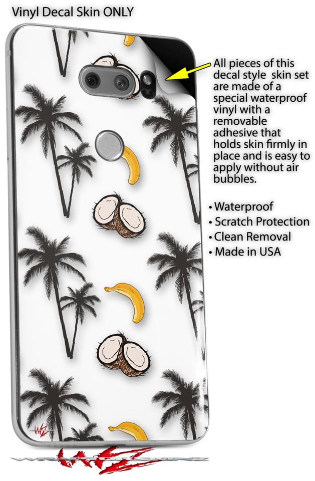 Skin Decal Wrap for LG V30 Coconuts Palm Trees and Bananas White
