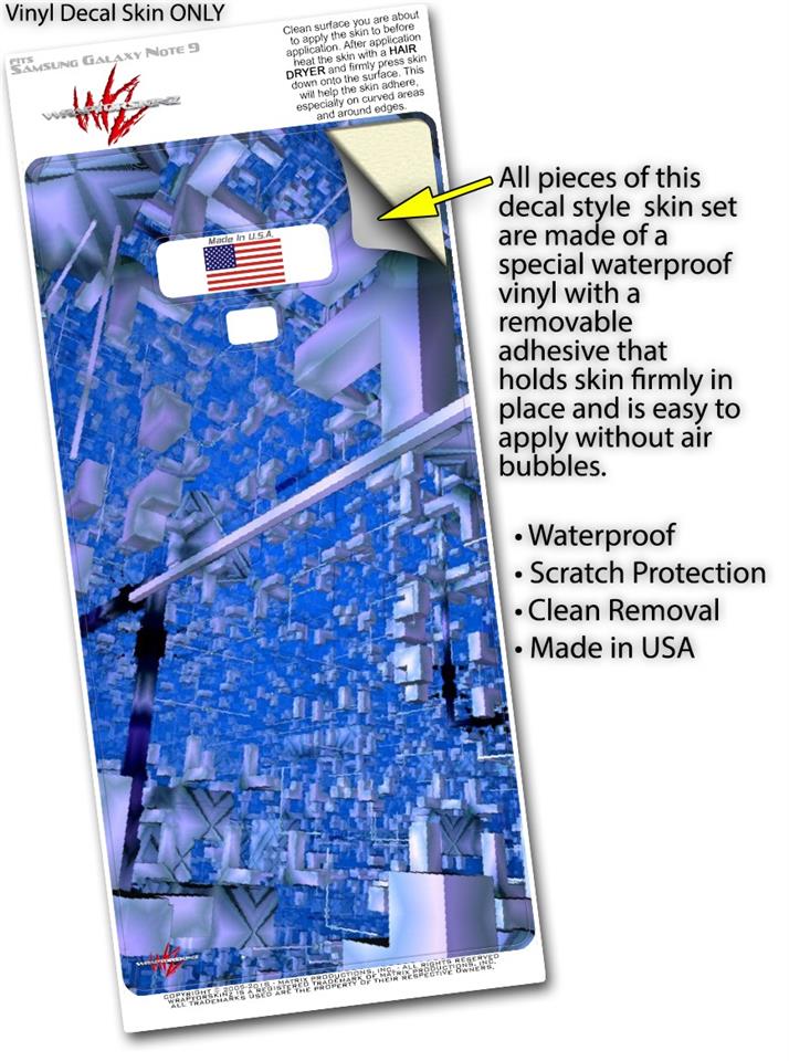 • Decal style vinyl skin covers back and part of the sides of Samsung Galaxy Note 9 - Not a hard case - Fits well with most Clear and TPU cases.