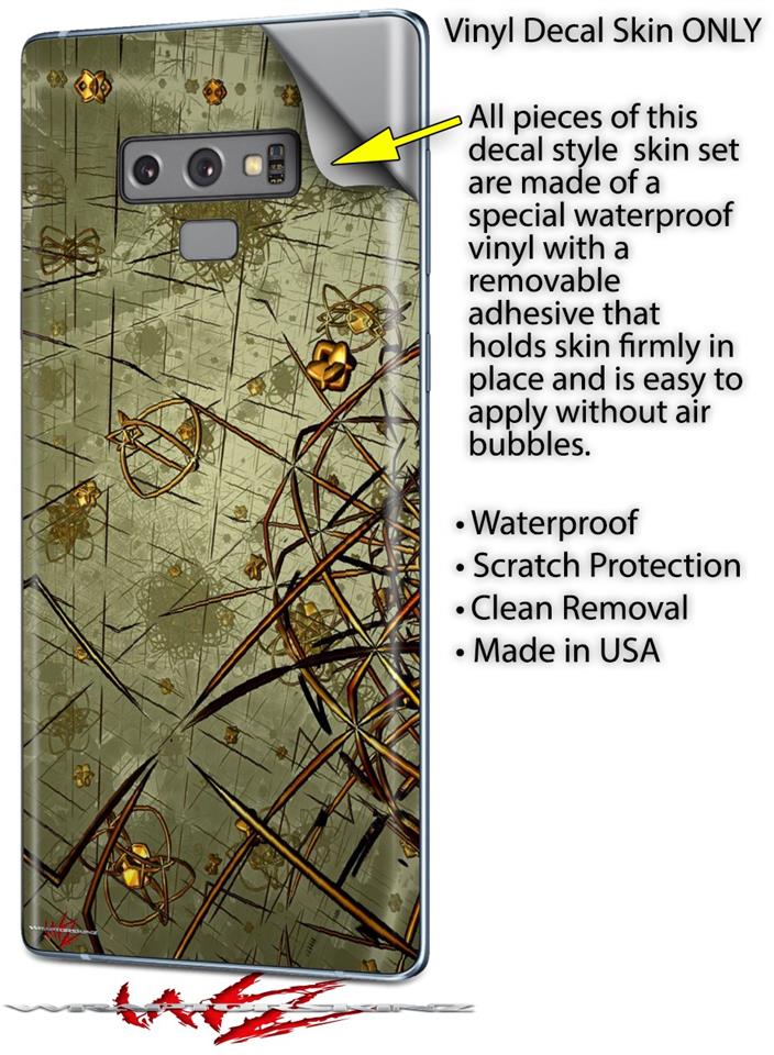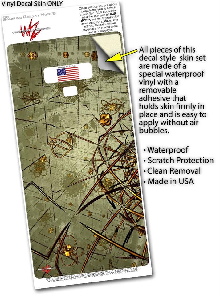 • Decal style vinyl skin covers back and part of the sides of Samsung Galaxy Note 9 - Not a hard case - Fits well with most Clear and TPU cases.