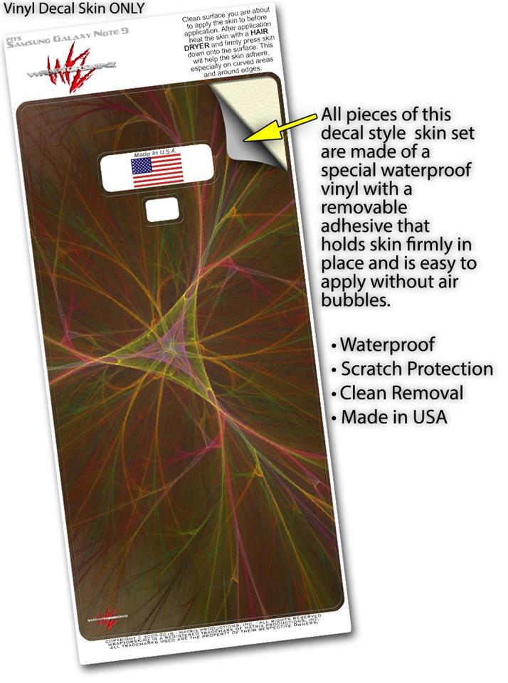 WraptorSkinz® skin wraps for the Samsung Galaxy Note 9 are printed using superb photo quality designs and vibrant colors printed with special fade resistant inks that last even in direct sun for years. WraptorSkinz are a composite of two layers of commercial grade materials. The bottom layer is a soft, flexible vinyl with a special removable adhesive that is easily positioned, applied without air bubbles. Next, we print the bottom layer with UV protected, fade resistant inks that deliver superb photo quality designs in vibrant colors. Finally, we bond a professional grade laminate over the entire Galaxy Note 9 skin adding a glossy protective finish. This product is not affiliated with or endorsed by Samsung.
