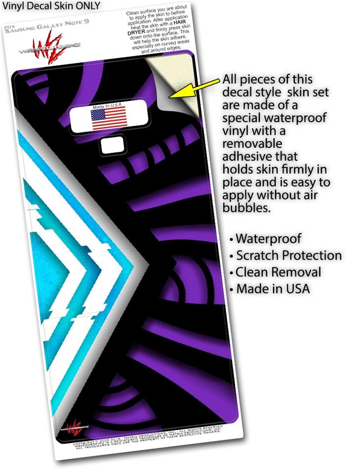 Decal style Skin Wrap compatible with Samsung Galaxy Note 9 Black Waves Neon Teal Purple