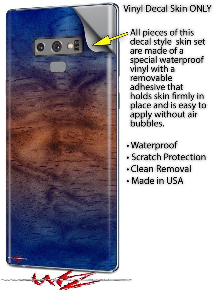 Decal style Skin Wrap compatible with Samsung Galaxy Note 9 Exotic Wood Waterfall Bubinga Burst Neon Blue
