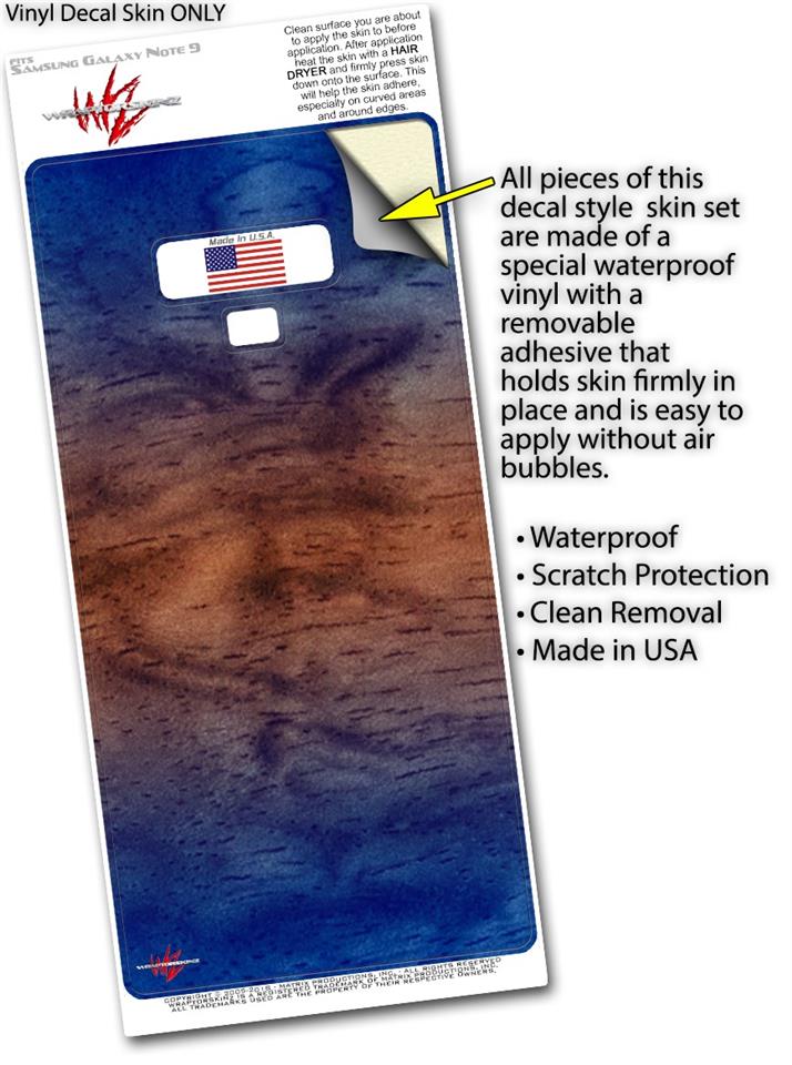 WraptorSkinz® skin wraps for the Samsung Galaxy Note 9 are printed using superb photo quality designs and vibrant colors printed with special fade resistant inks that last even in direct sun for years. WraptorSkinz are a composite of two layers of commercial grade materials. The bottom layer is a soft, flexible vinyl with a special removable adhesive that is easily positioned, applied without air bubbles. Next, we print the bottom layer with UV protected, fade resistant inks that deliver superb photo quality designs in vibrant colors. Finally, we bond a professional grade laminate over the entire Galaxy Note 9 skin adding a glossy protective finish. This product is not affiliated with or endorsed by Samsung.