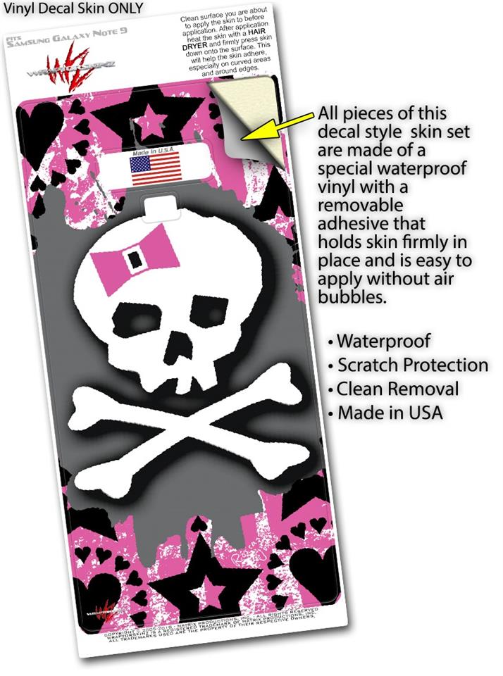 Decal style Skin Wrap compatible with Samsung Galaxy Note 9 Pink Bow Skull