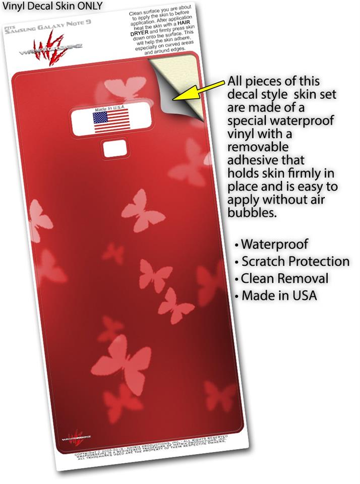 Decal style Skin Wrap compatible with Samsung Galaxy Note 9 Bokeh Butterflies Red