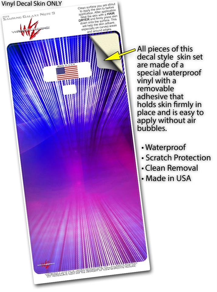 WraptorSkinz® skin wraps for the Samsung Galaxy Note 9 are printed using superb photo quality designs and vibrant colors printed with special fade resistant inks that last even in direct sun for years. WraptorSkinz are a composite of two layers of commercial grade materials. The bottom layer is a soft, flexible vinyl with a special removable adhesive that is easily positioned, applied without air bubbles. Next, we print the bottom layer with UV protected, fade resistant inks that deliver superb photo quality designs in vibrant colors. Finally, we bond a professional grade laminate over the entire Galaxy Note 9 skin adding a glossy protective finish. This product is not affiliated with or endorsed by Samsung.