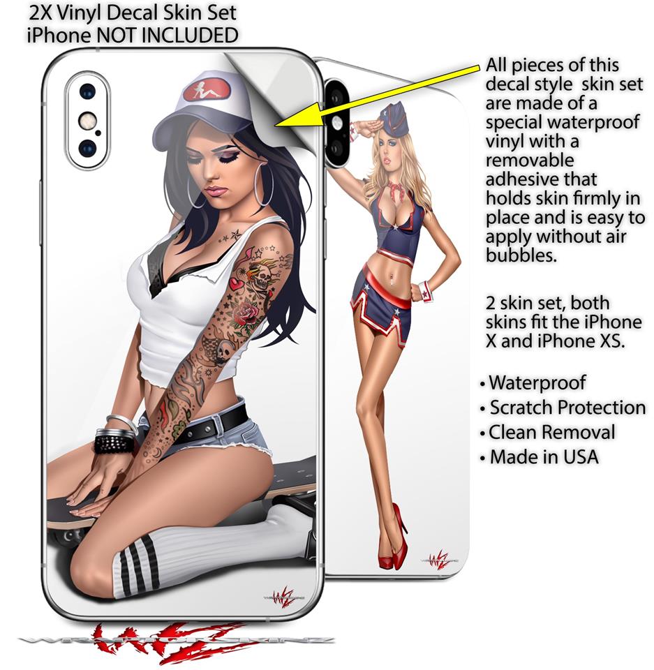 2 Decal style Skin Wraps set for Apple iPhone X and XS Boarder Girl 14b