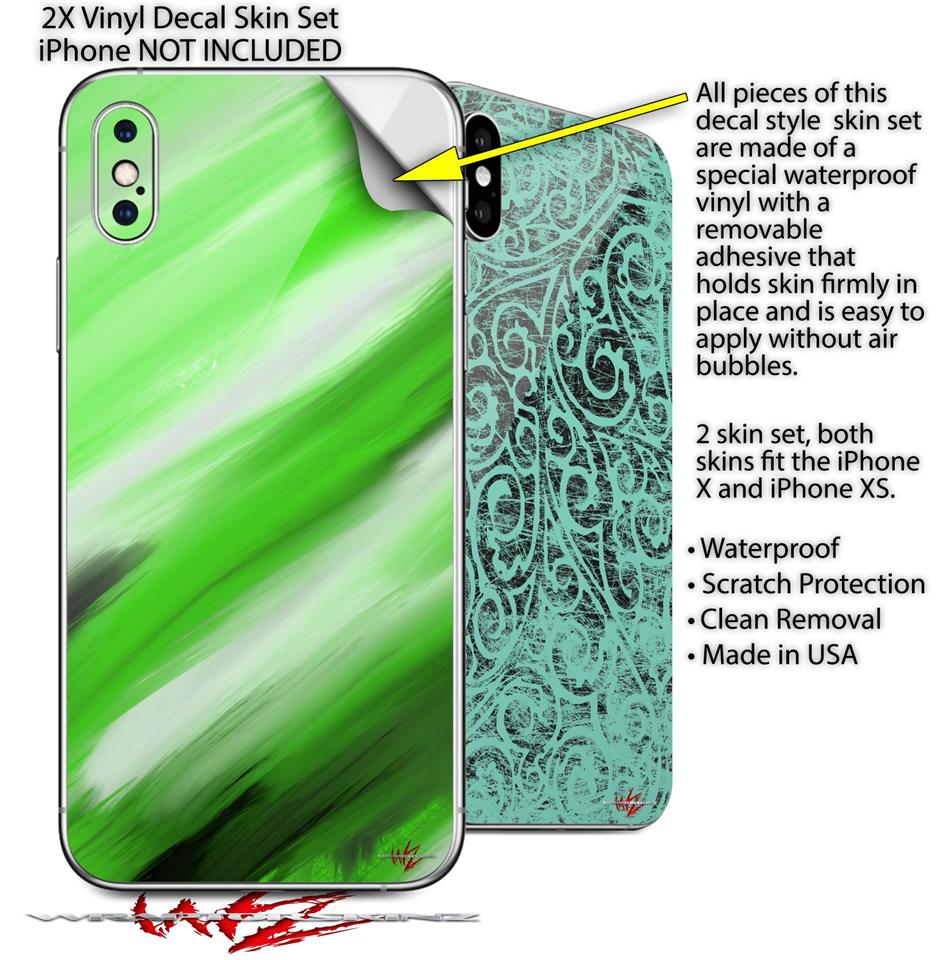 2 Decal style Skin Wraps set for Apple iPhone X and XS Paint Blend Green