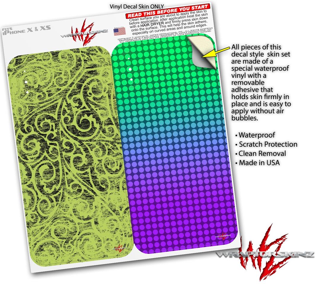 2 Decal style Skin Wraps set for Apple iPhone X and XS Folder Doodles Sage Green