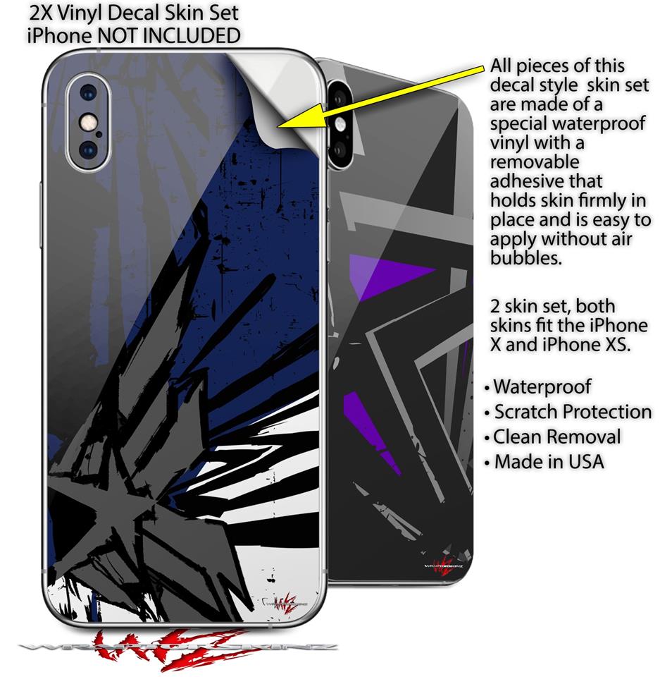 2 Decal style Skin Wraps set for Apple iPhone X and XS Baja 0040 Blue Navy
