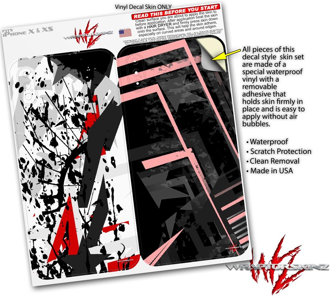 2 Decal style Skin Wraps set for Apple iPhone X and XS Baja 0018 Red