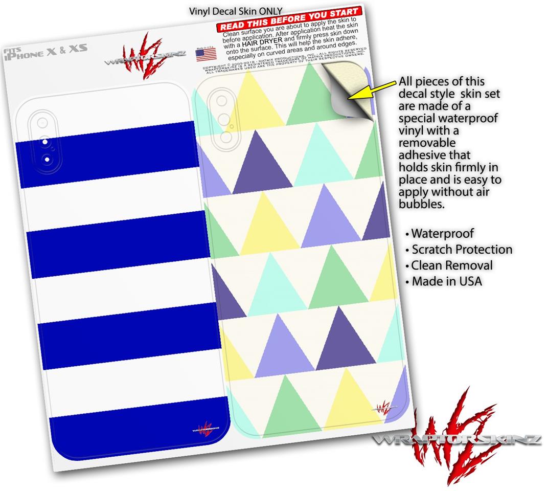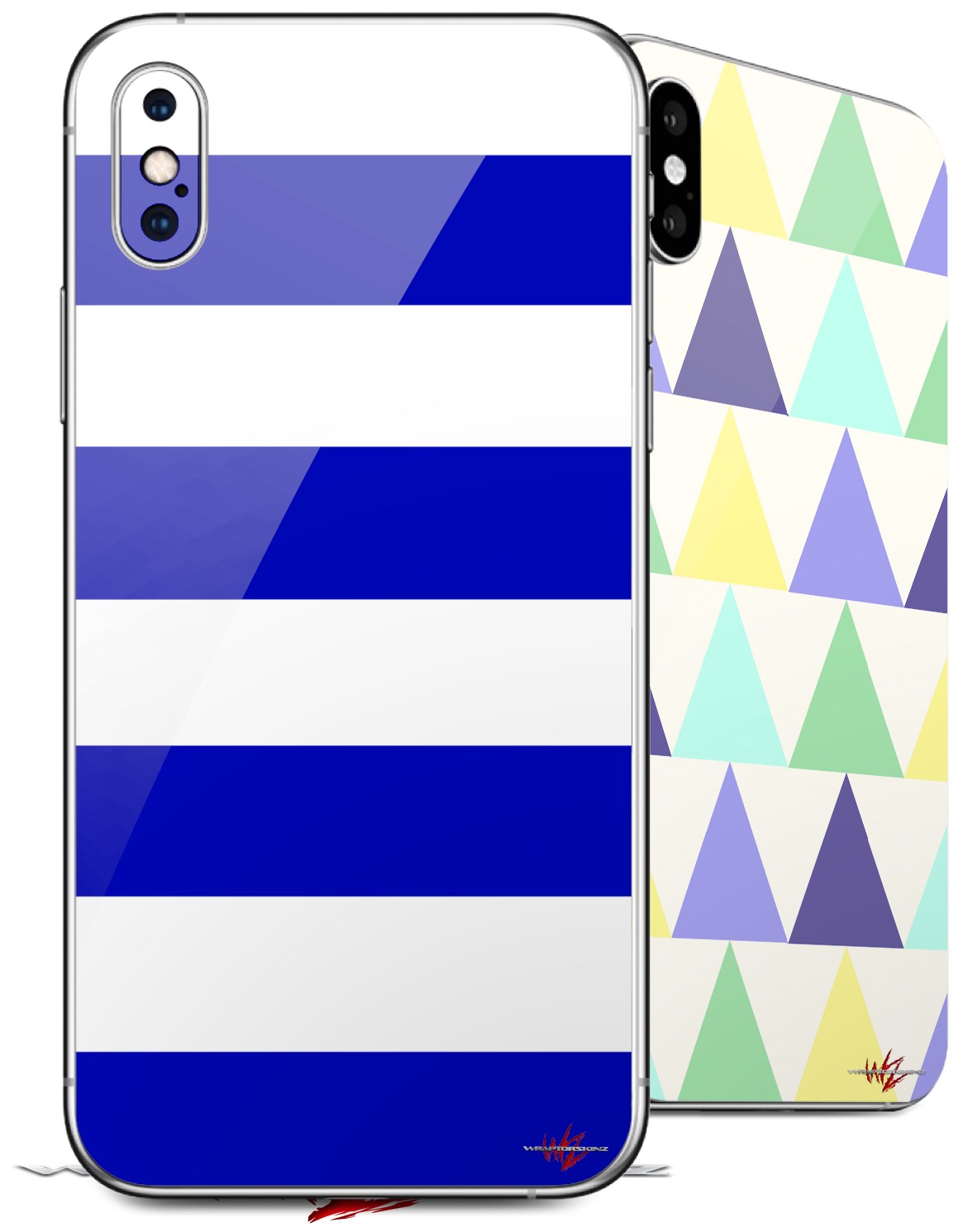 2 Decal style Skin Wraps set for Apple iPhone X and XS Psycho Stripes Blue and White
