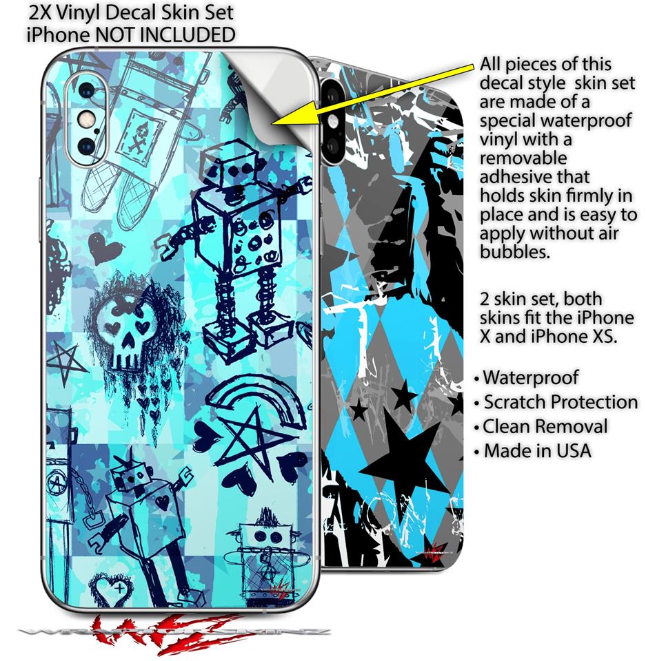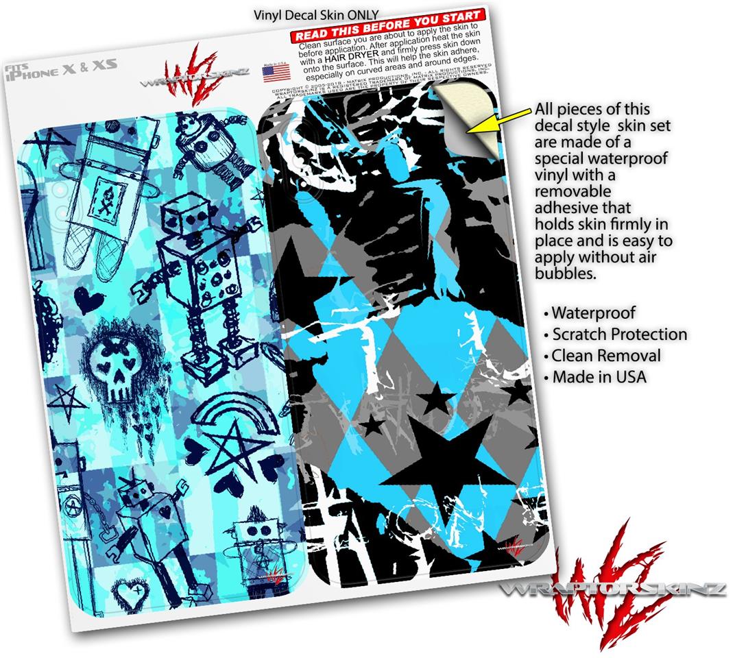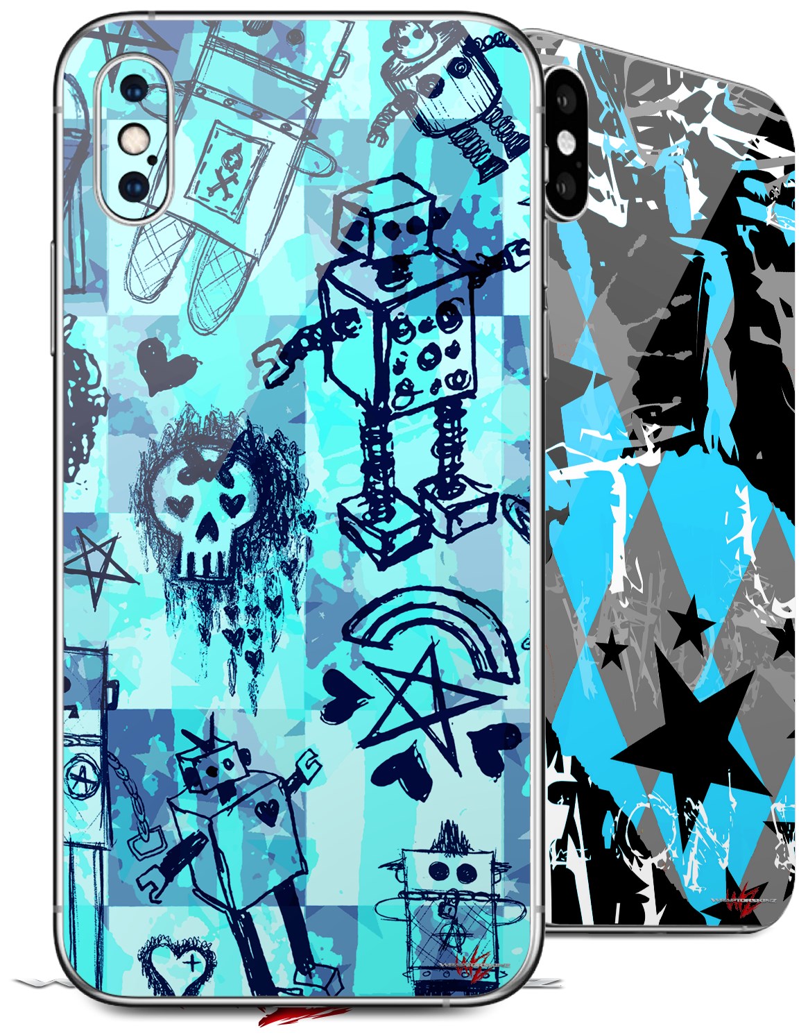 2 Decal style Skin Wraps set for Apple iPhone X and XS Scene Kid Sketches Blue