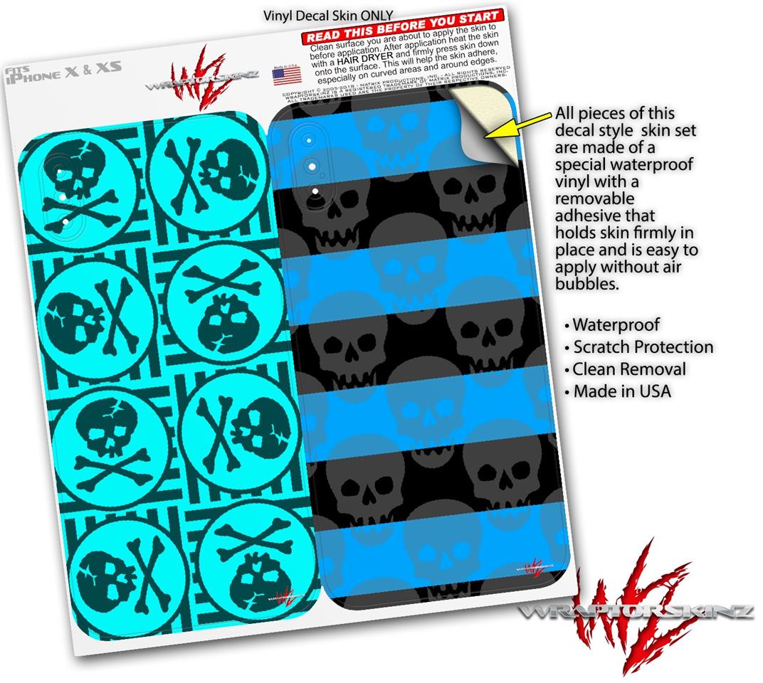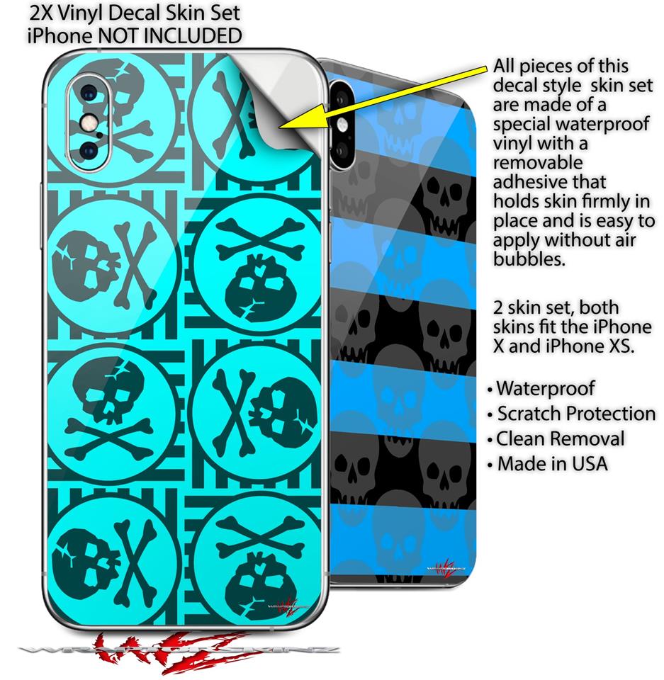 2 Decal style Skin Wraps set for Apple iPhone X and XS Skull Patch Pattern Blue