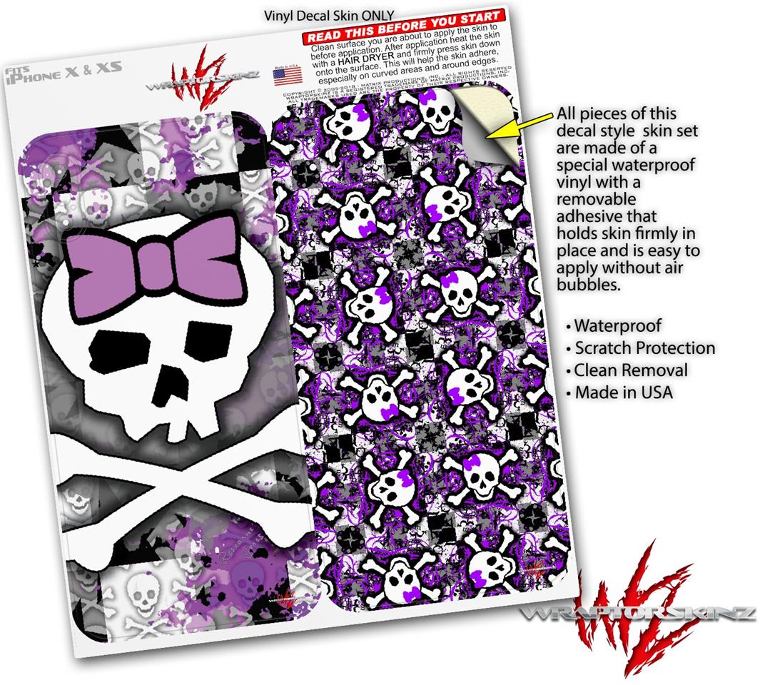 2 Decal style Skin Wraps set for Apple iPhone X and XS Princess Skull Purple