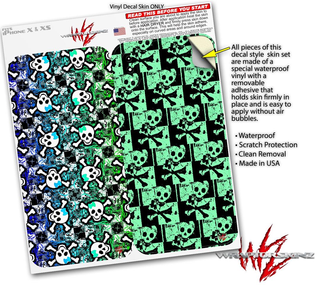 2 Decal style Skin Wraps set for Apple iPhone X and XS Splatter Girly Skull Rainbow