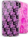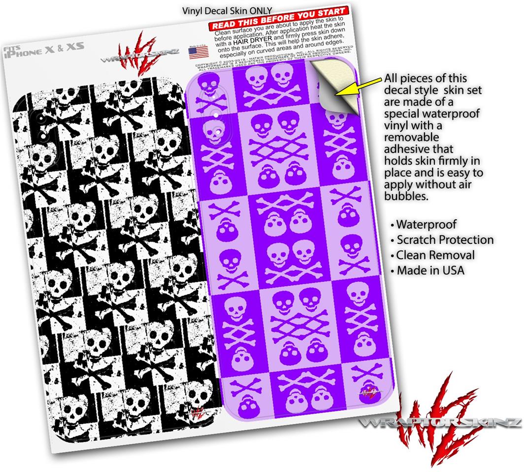 2 Decal style Skin Wraps set for Apple iPhone X and XS Skull Checker