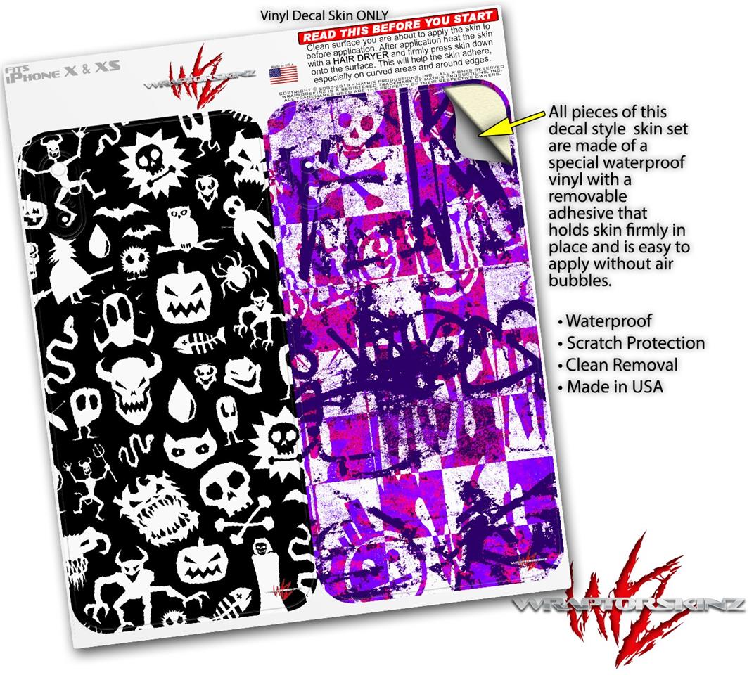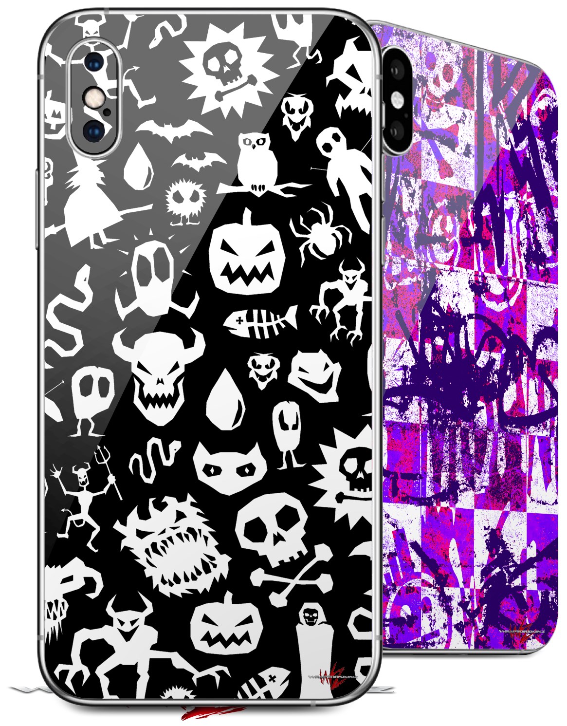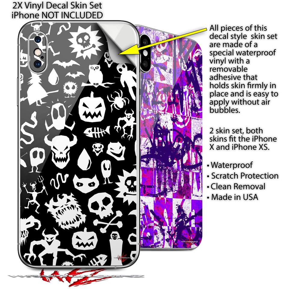 2 Decal style Skin Wraps set for Apple iPhone X and XS Monsters