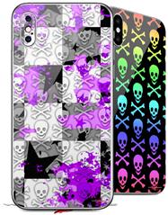 2 Decal style Skin Wraps set for Apple iPhone X and XS Purple Checker Skull Splatter