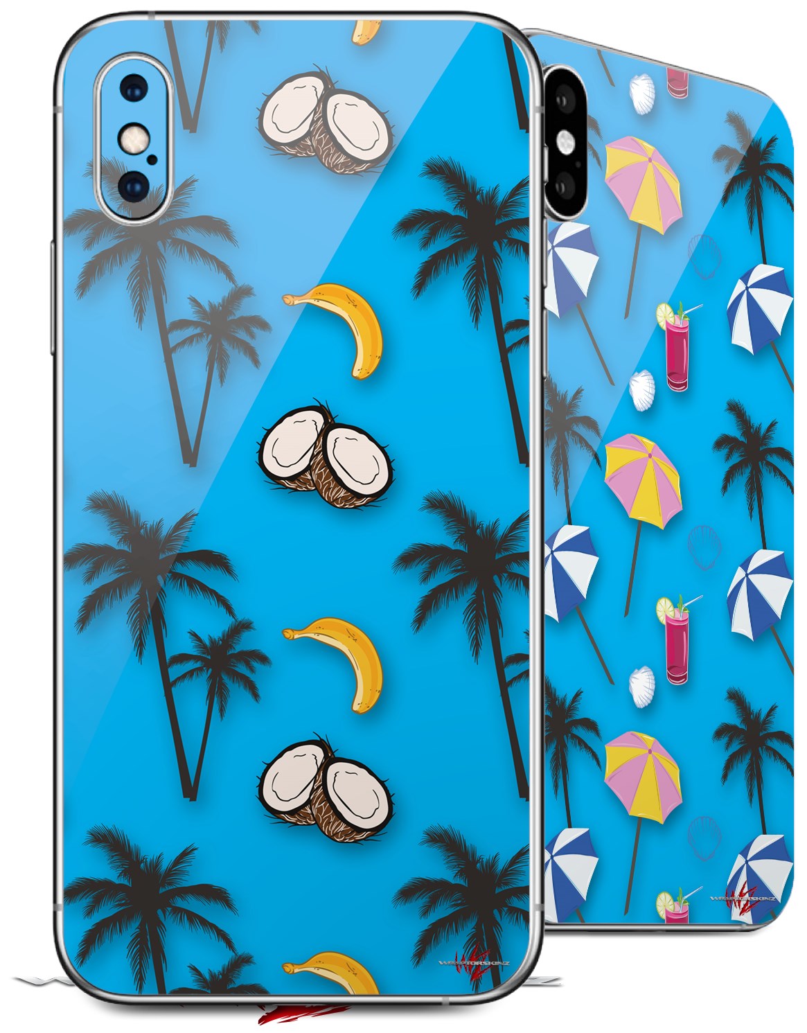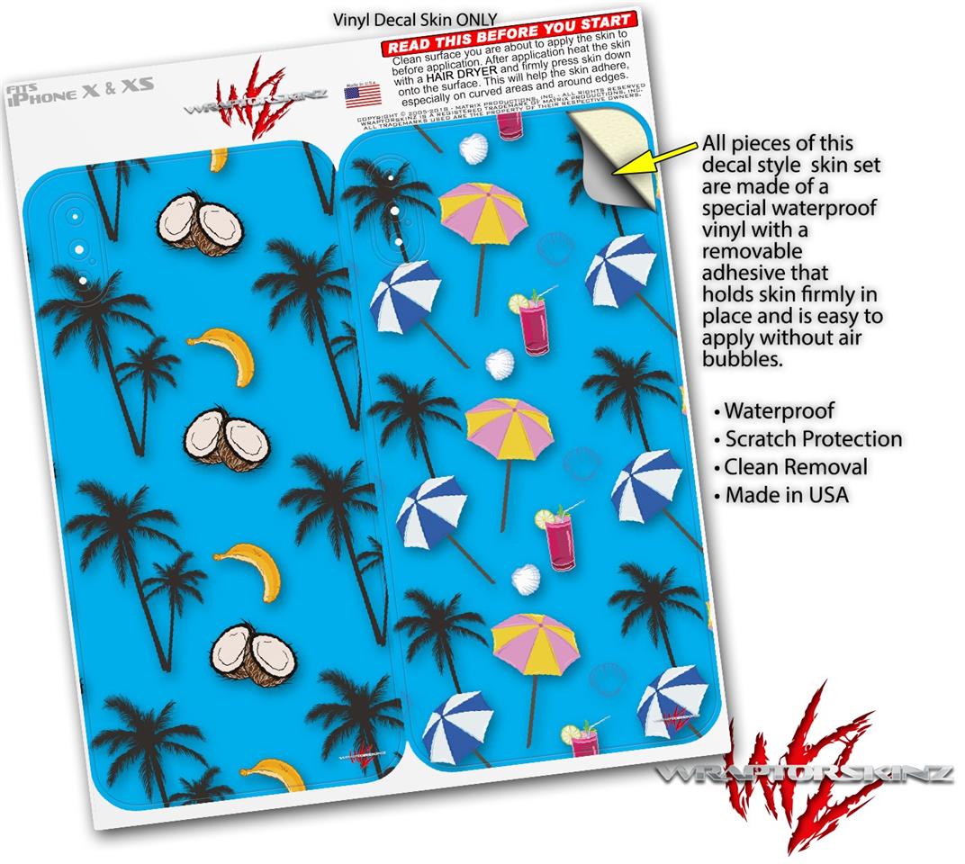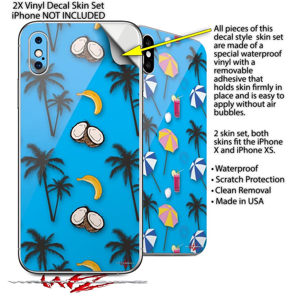 2 Decal style Skin Wraps set for Apple iPhone X and XS Coconuts Palm Trees and Bananas Blue Medium