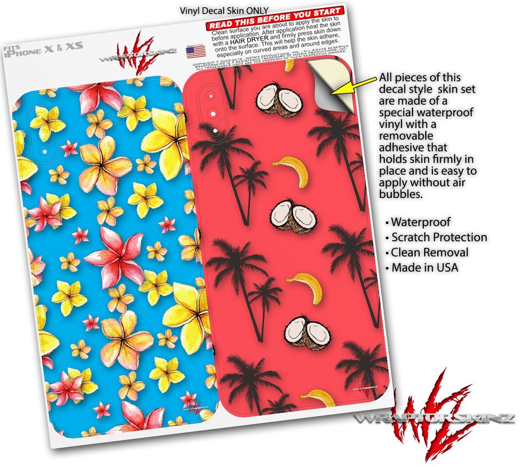 2 Decal style Skin Wraps set for Apple iPhone X and XS Beach Flowers Blue Medium