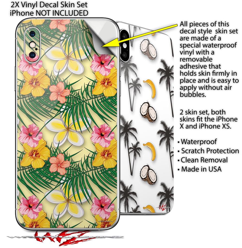 2 Decal style Skin Wraps set for Apple iPhone X and XS Beach Flowers 02 Yellow Sunshine