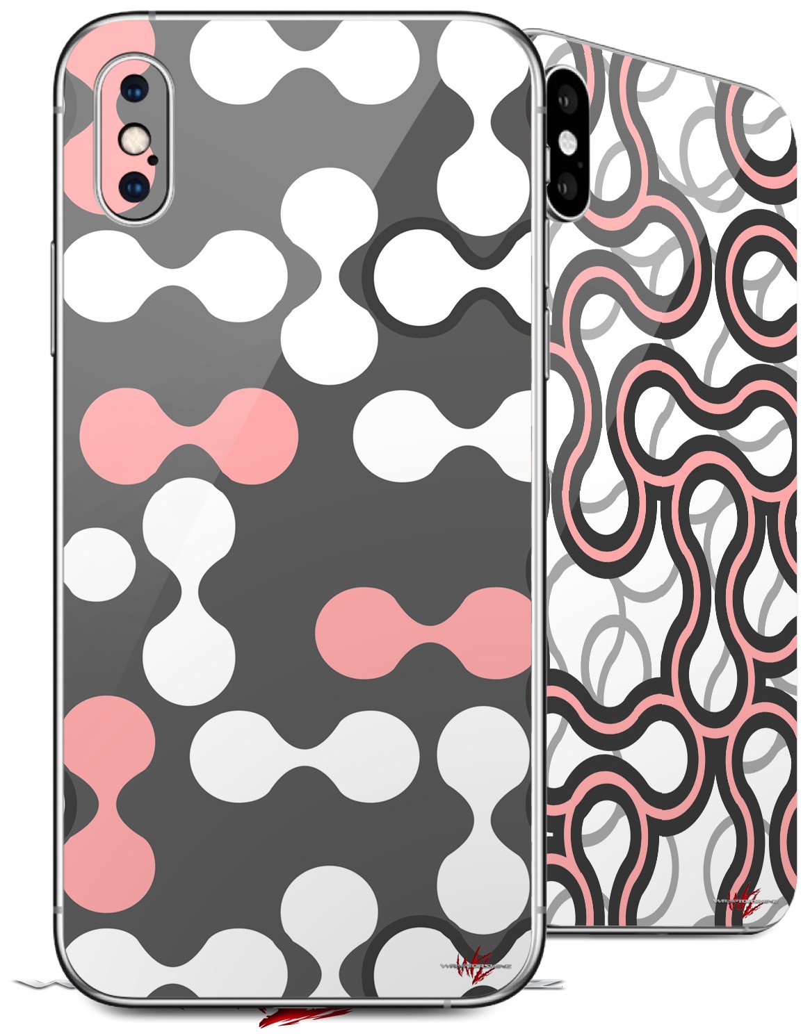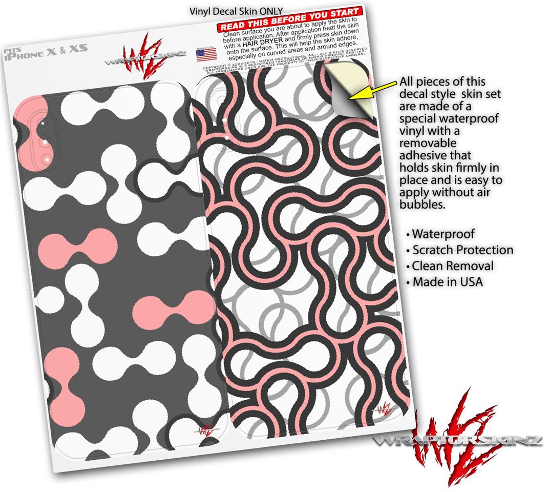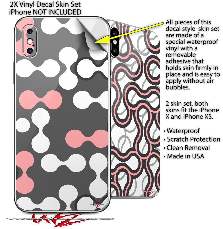 2 Decal style Skin Wraps set for Apple iPhone X and XS Locknodes 04 Pink