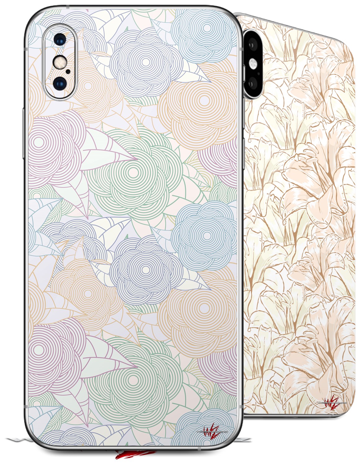 2 Decal style Skin Wraps set for Apple iPhone X and XS Flowers Pattern 10